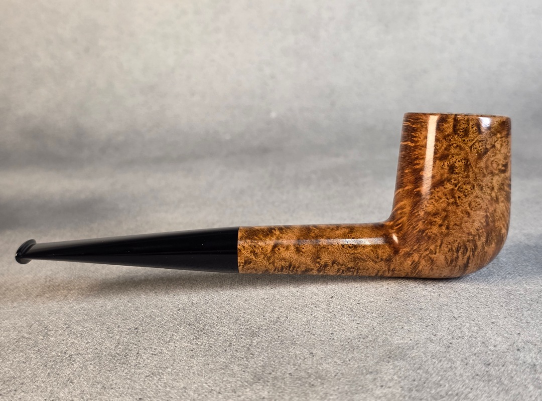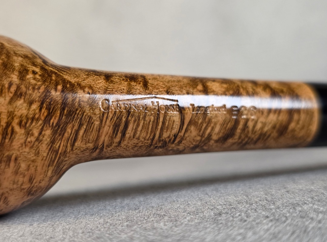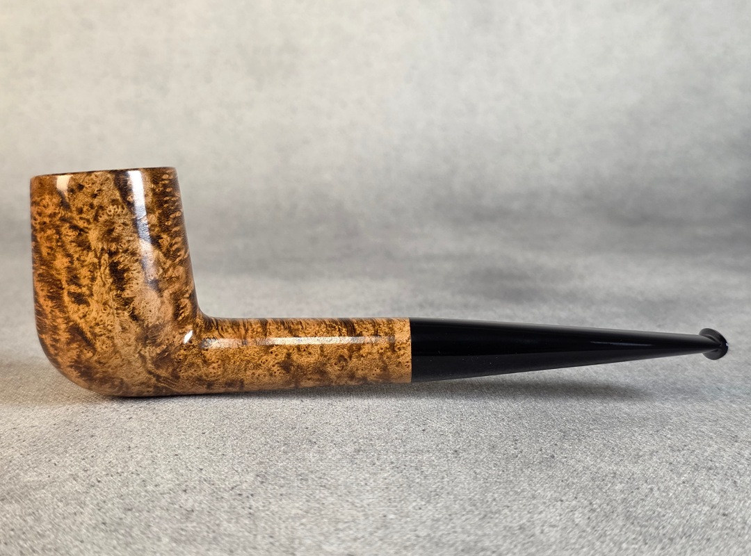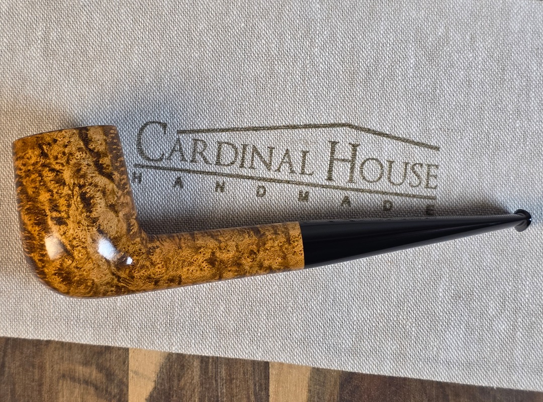 ThisĀ Cardinal House pipes Langford series Billiard shaped briar pipe is finished in a natural Briar toned high-contrast stain. The stem is meticulously and expertly hand-cut from black NYH German Ebonite rod.