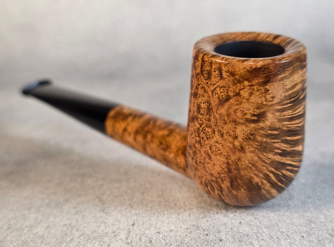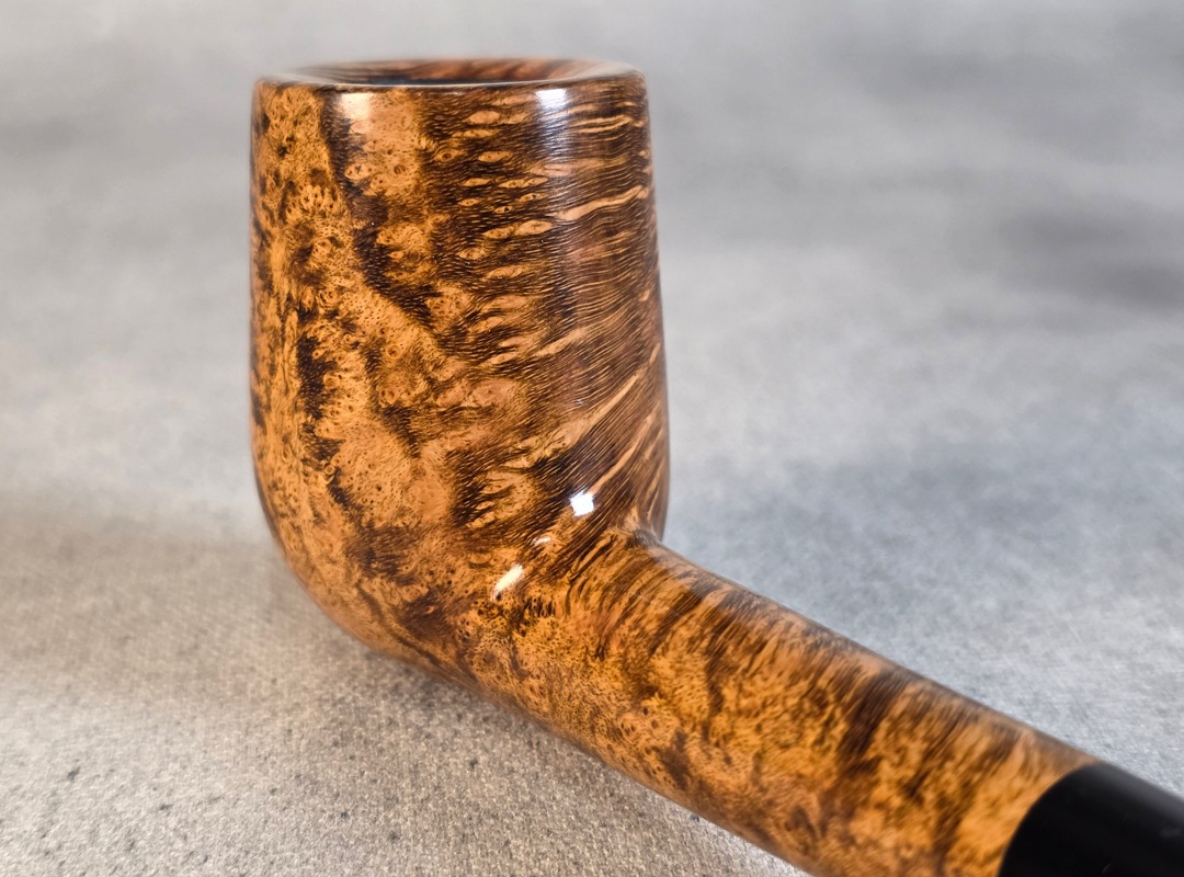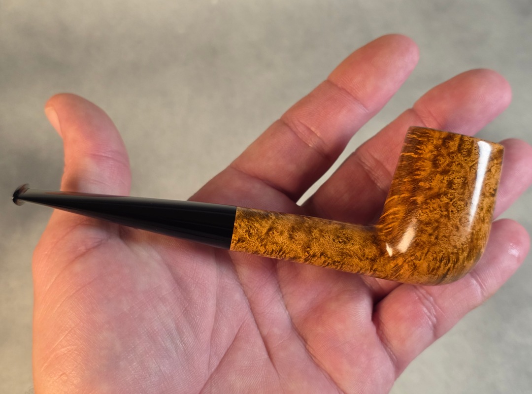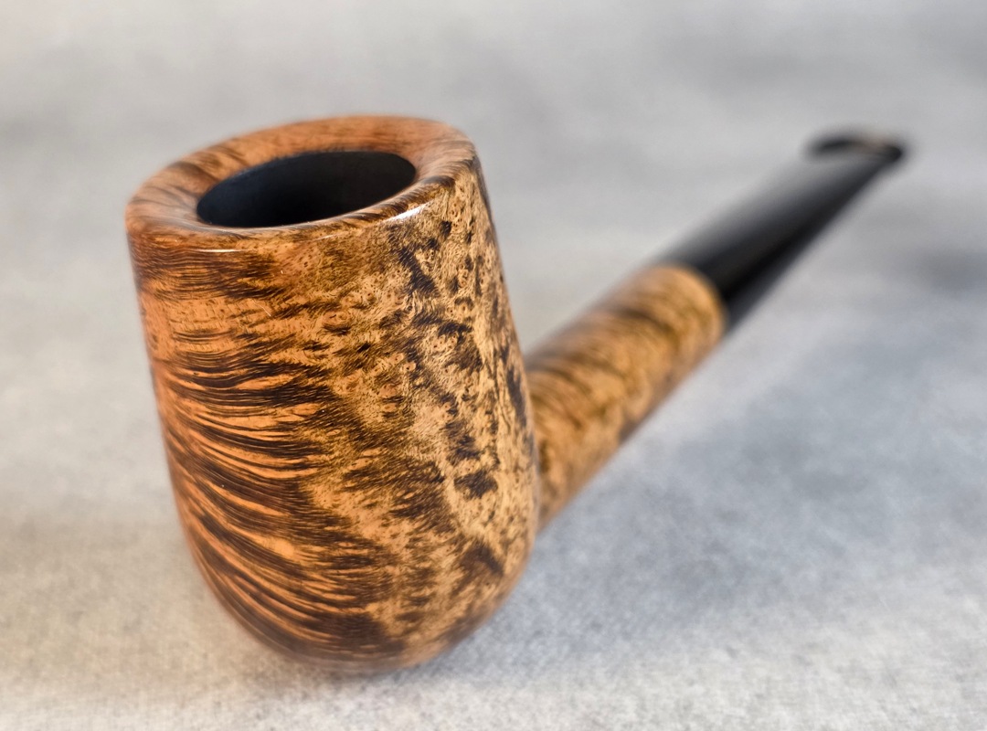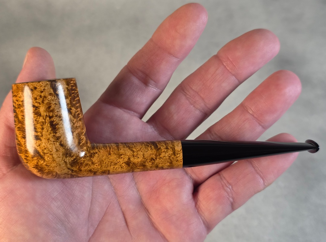 ThisĀ Cardinal House pipes Langford series Billiard shaped briar pipe is finished in a natural Briar toned high-contrast stain. The stem is meticulously and expertly hand-cut from black NYH German Ebonite rod.