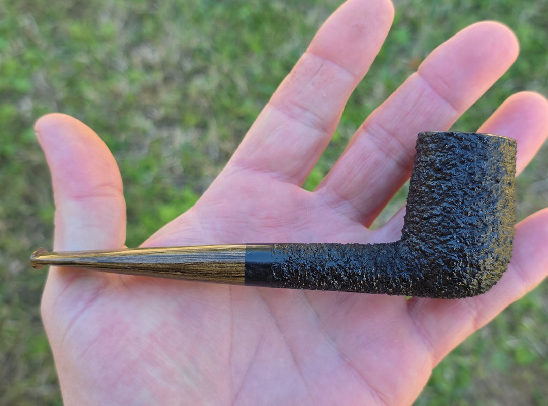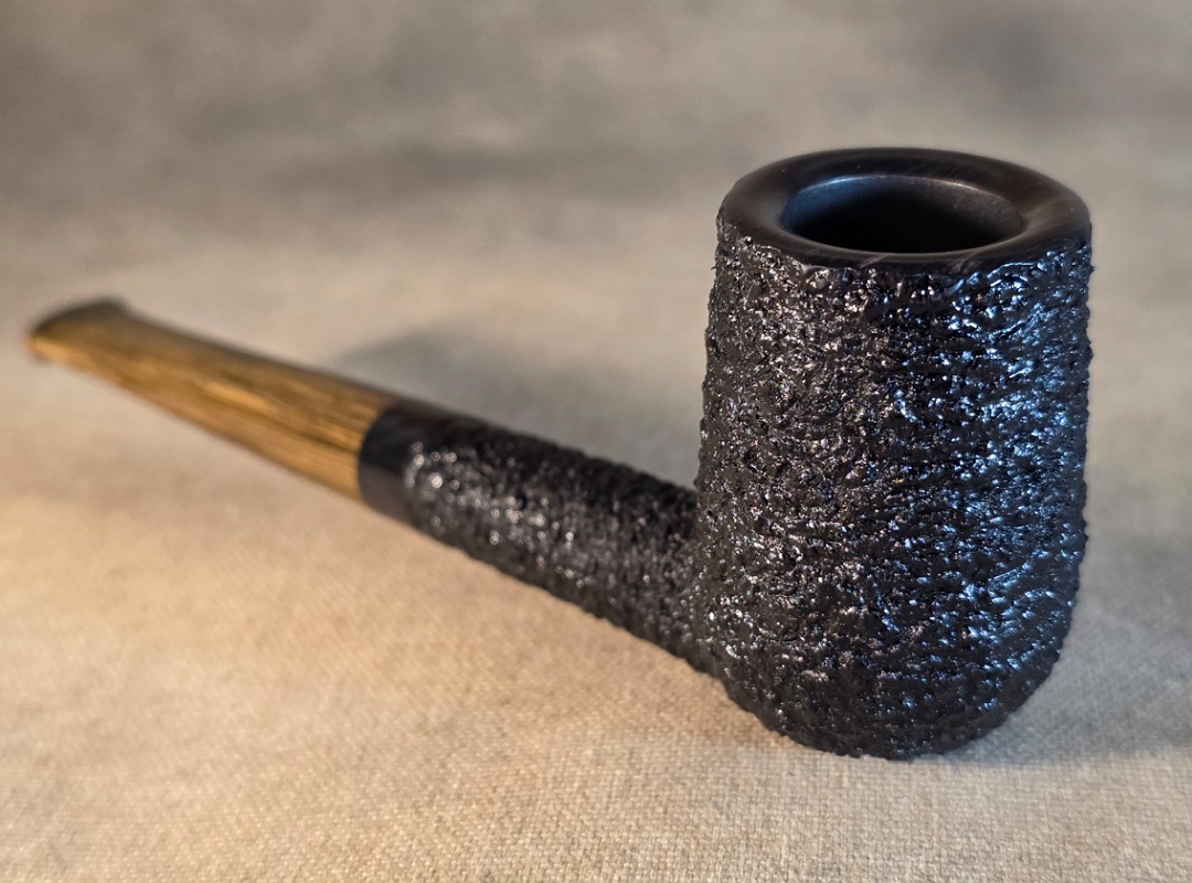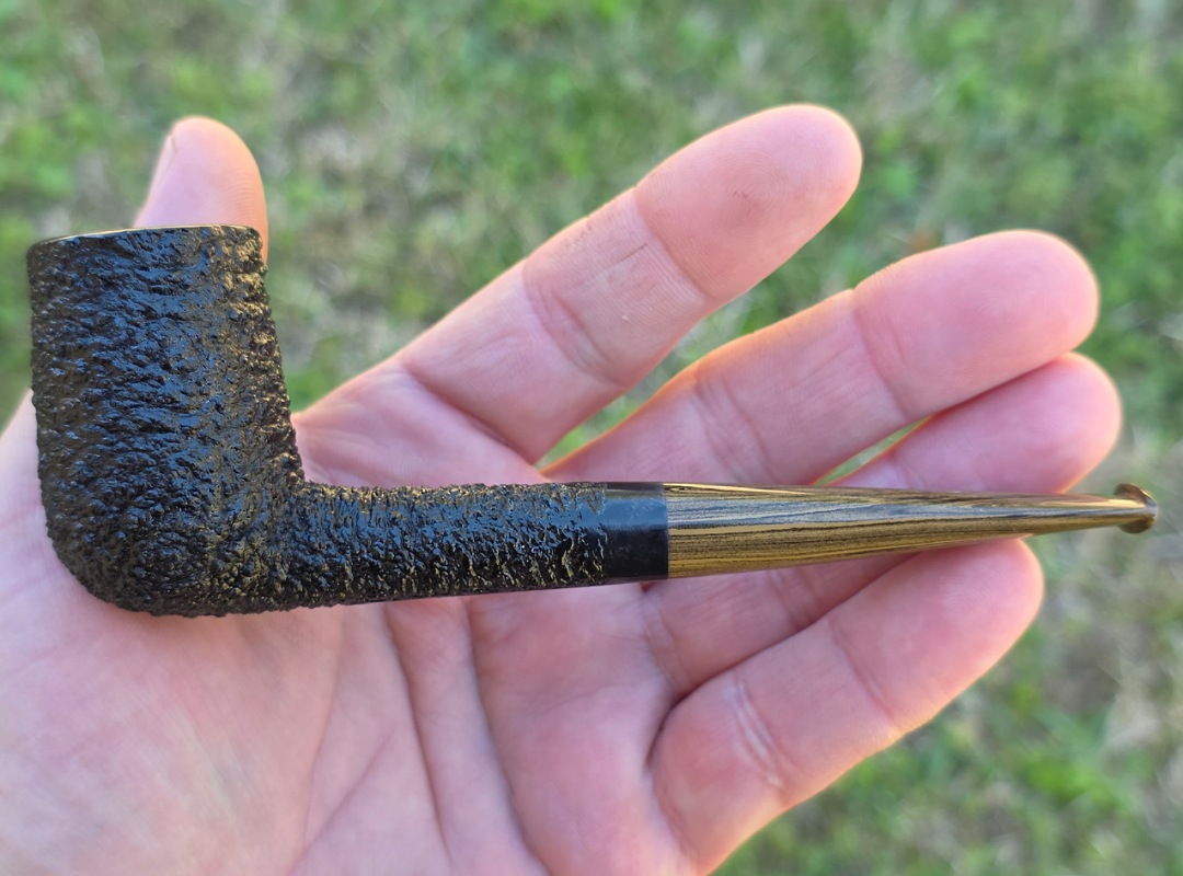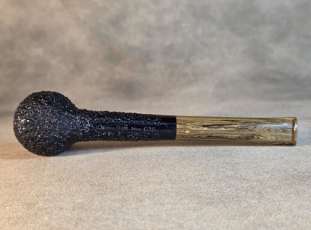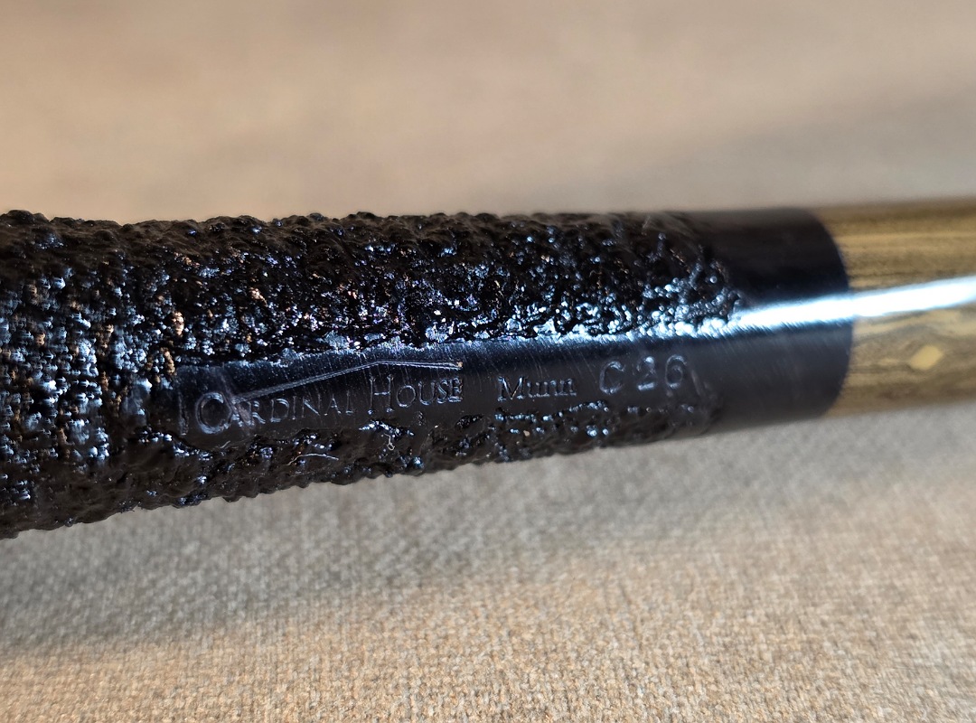 ThisĀ Cardinal House pipes Munn series Billiard is finished in an attractive traditional hand rustication with black stain. The stem is expertly hand-cut from NYH German Brindle Ebonite rod.