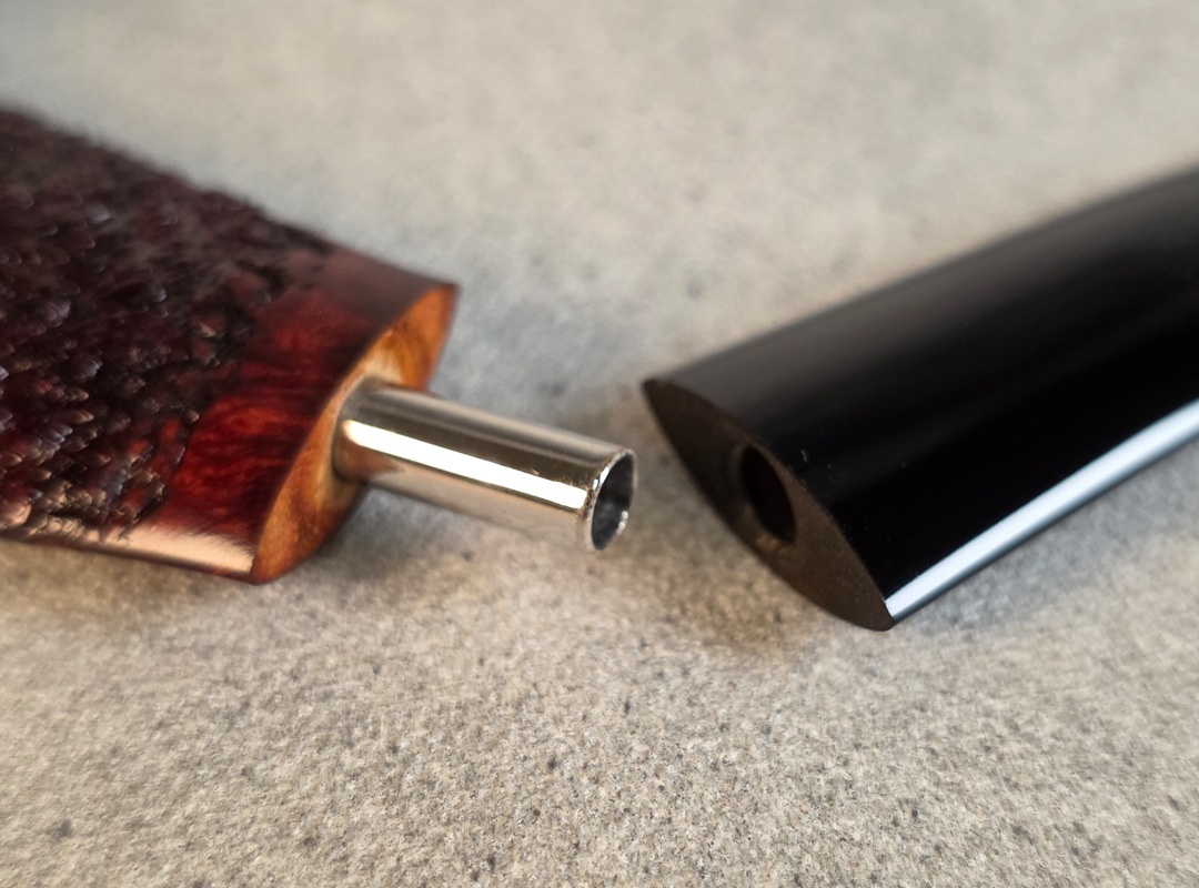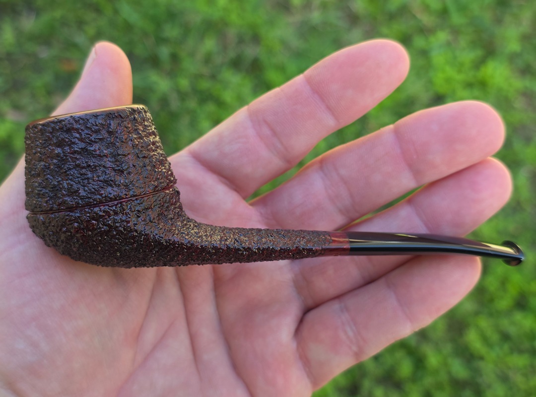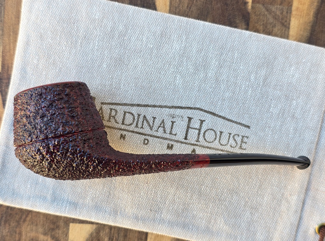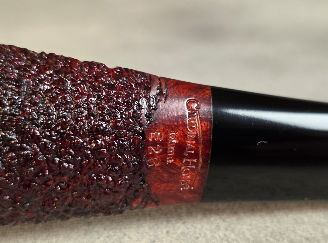 ThisĀ Cardinal House pipes Munn series Rhodesian shaped briar pipe features a wide, flat shank reinforced with stainless steel tubing with a stainless tenon. The stem is expertly hand-cut from black NYH German Ebonite rod.